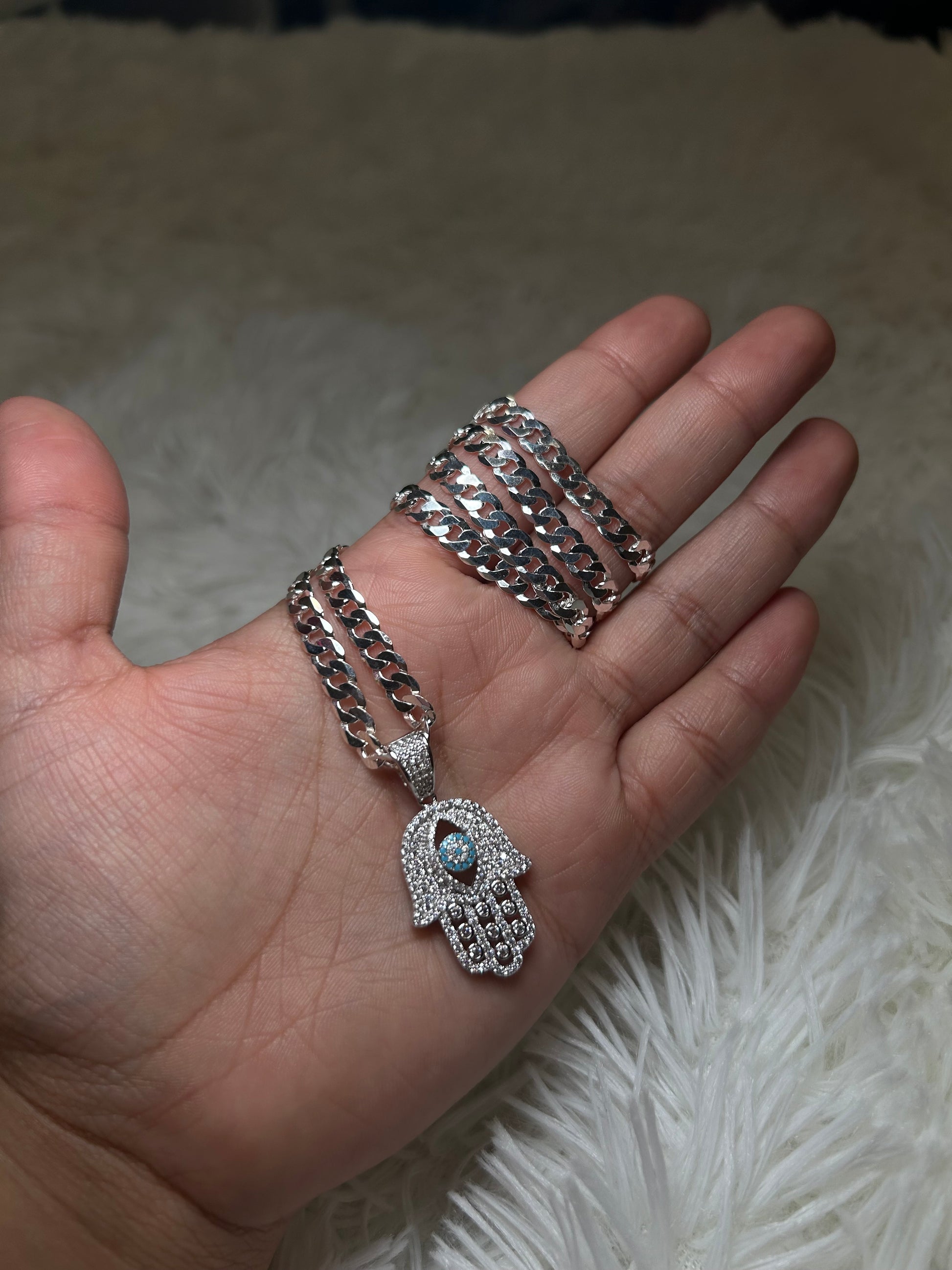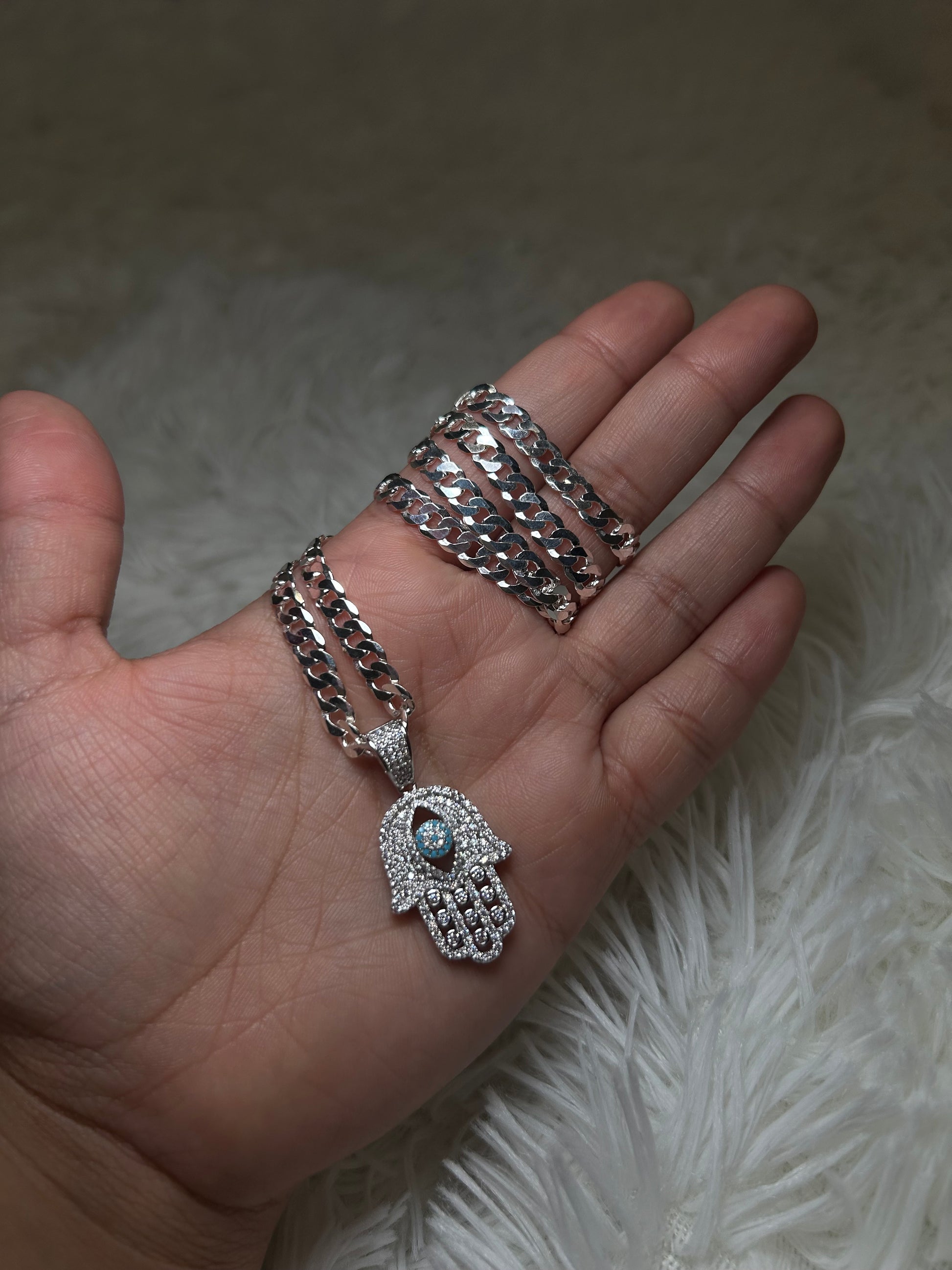 925 Silver Mano De Fatima Cuban Chain