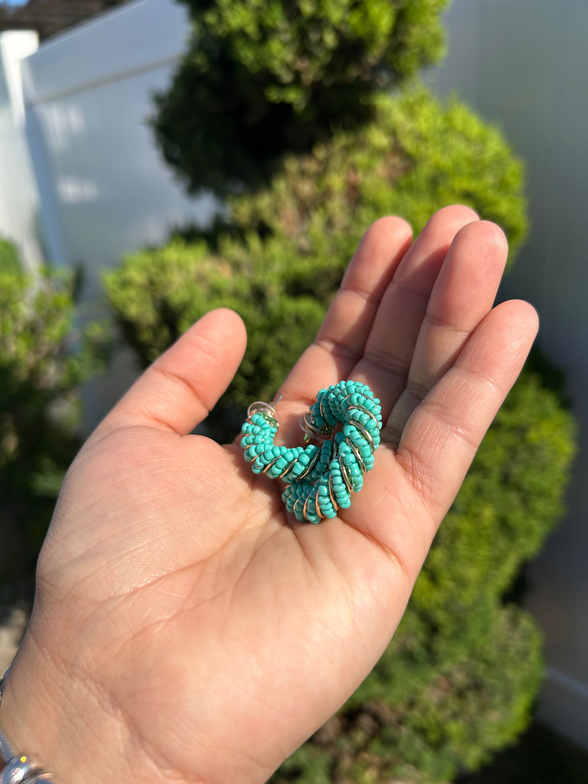 Teal Bead Hoops